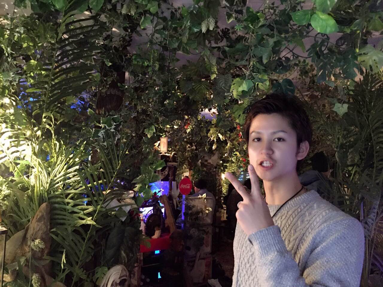 ついに入場!!!森をイメージした空間はオシャレ!!店内でお酒も飲めるとか・・・僕はアヒル口を意識したところ、ただただチャラくなりました(*_*;