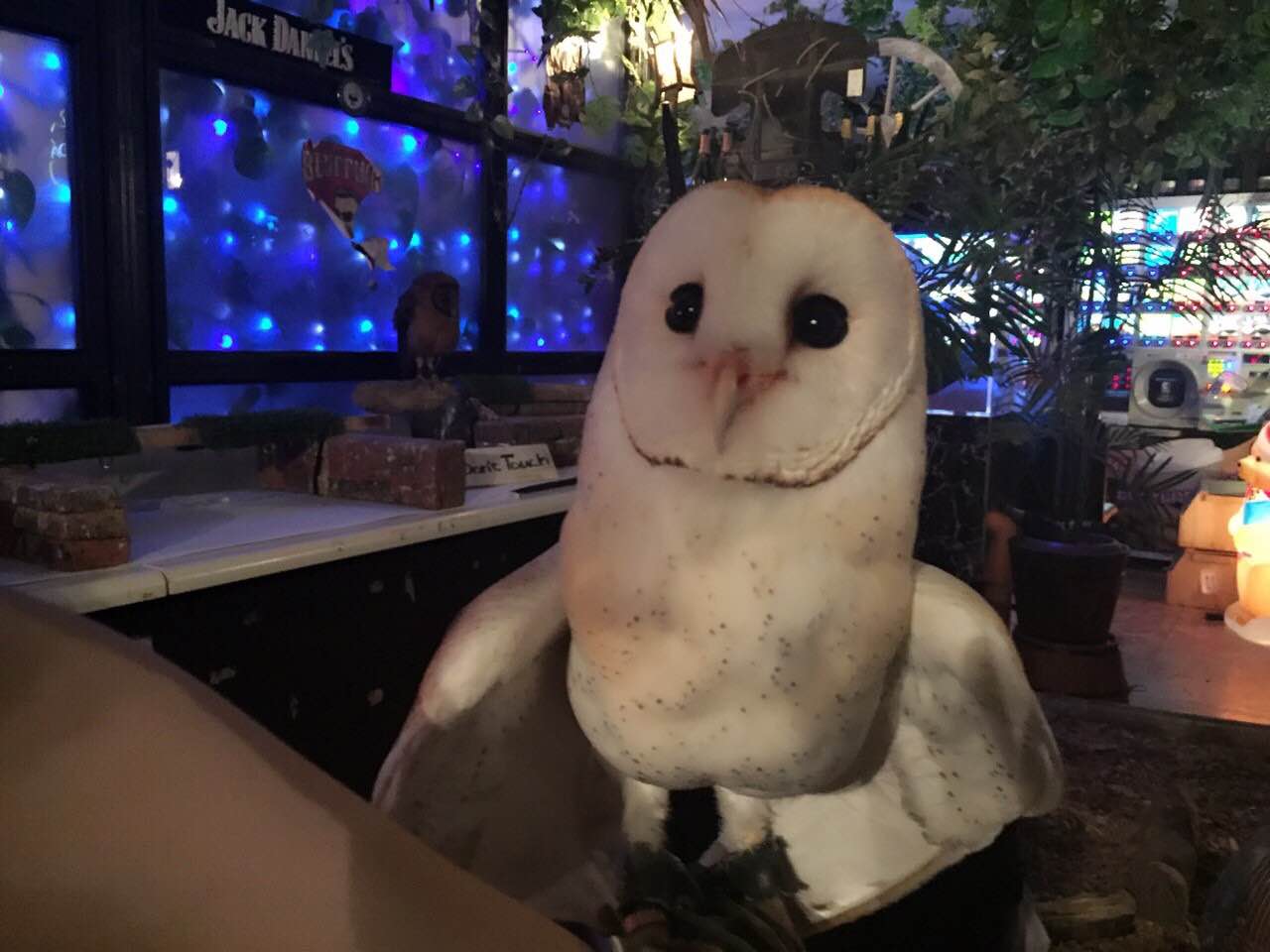 徒歩5分くらいでフクロウカフェ「アウルの森」・・・受付に行くとさっそくフクロウがお出迎え!!何とも言えない可愛さ!!