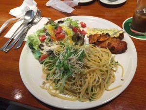 本日のランチプレート シラスと水菜のニンニクパスタ!!! ドリンク付き