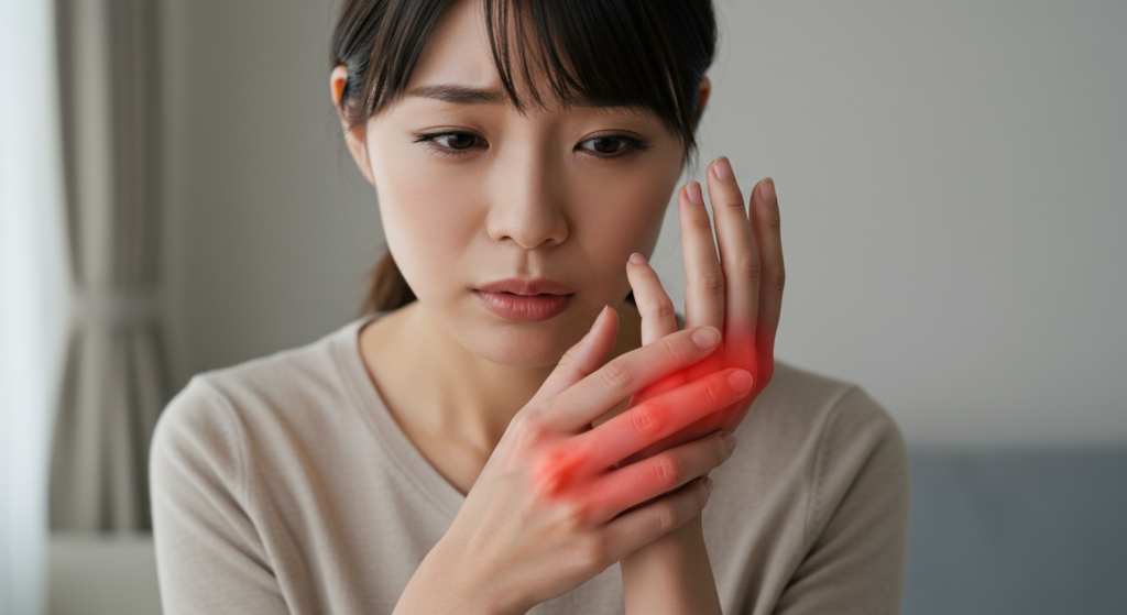 手だけでなく、腕・肩・背中などの筋肉や関節も含めてアプローチ。血流とリンパの流れを促進し、関節周囲の炎症を抑えることで、症状の緩和を目指します。